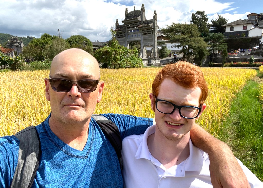 My son and I, about to enter one of Heshun’s city gates.