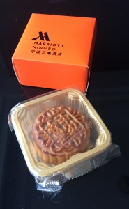 In celebration of China’s Mid-Autumn Festival (which correlates with the harvest moon), a friend had given Fred a big beautiful box full of sub-boxes, each containing an individually wrapped moon cake. The cakes are a Mid-Autumn Festival tradition. Fred had saved the little boxed cakes for us in his fridge.