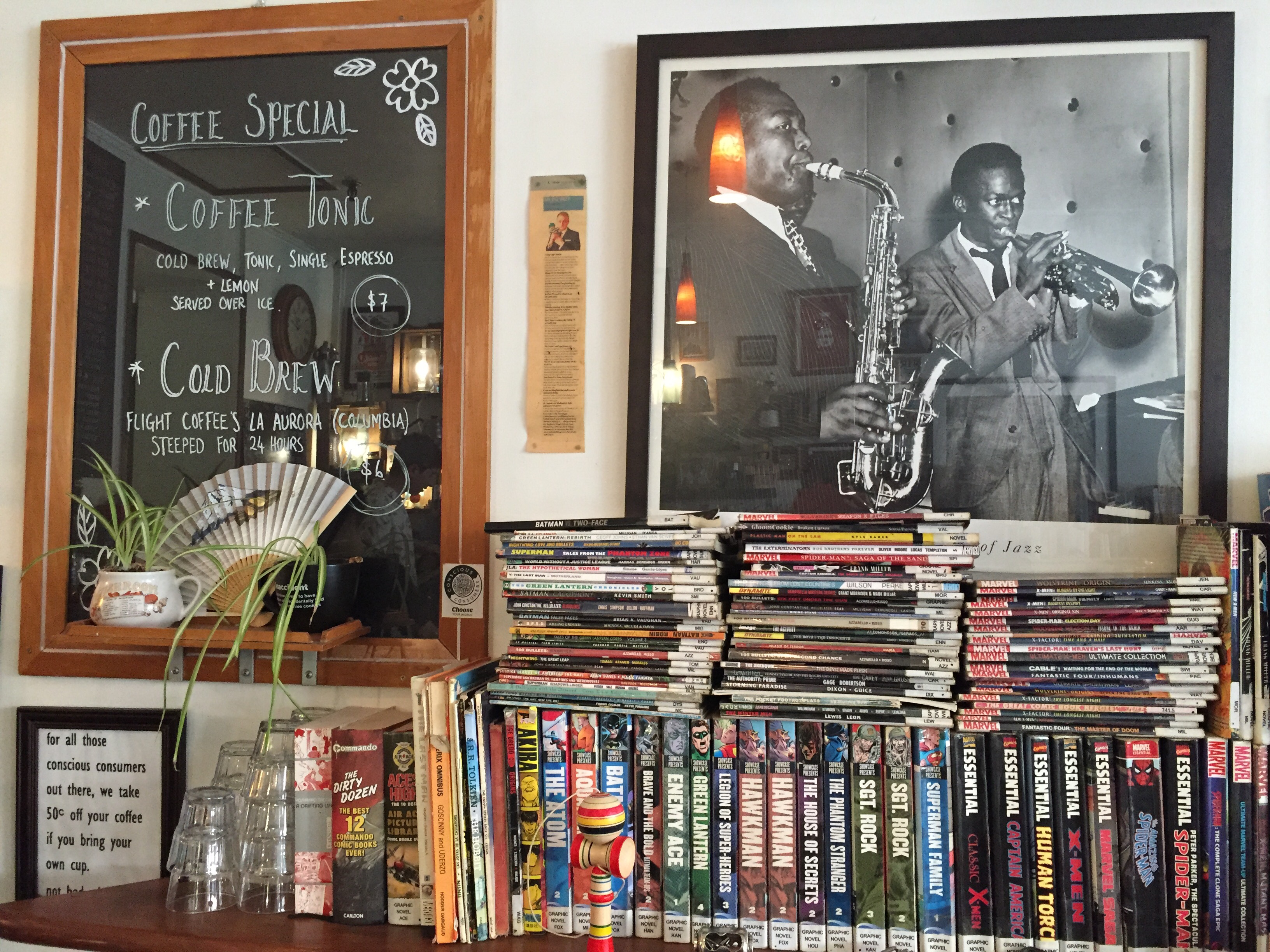 Friendly baristas!Amazing juice menu. So healthy!Super yum.Ambiance!Me and my son, who is not at all a coffee enthusiast and, as usual, did not share my enthusiasm for snapping a selfie.